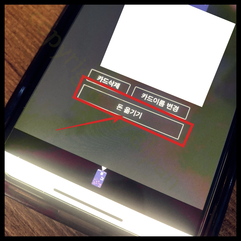 그럼 옮길 카드를 선택하셔서 돈을 옮기시면 됩니다.