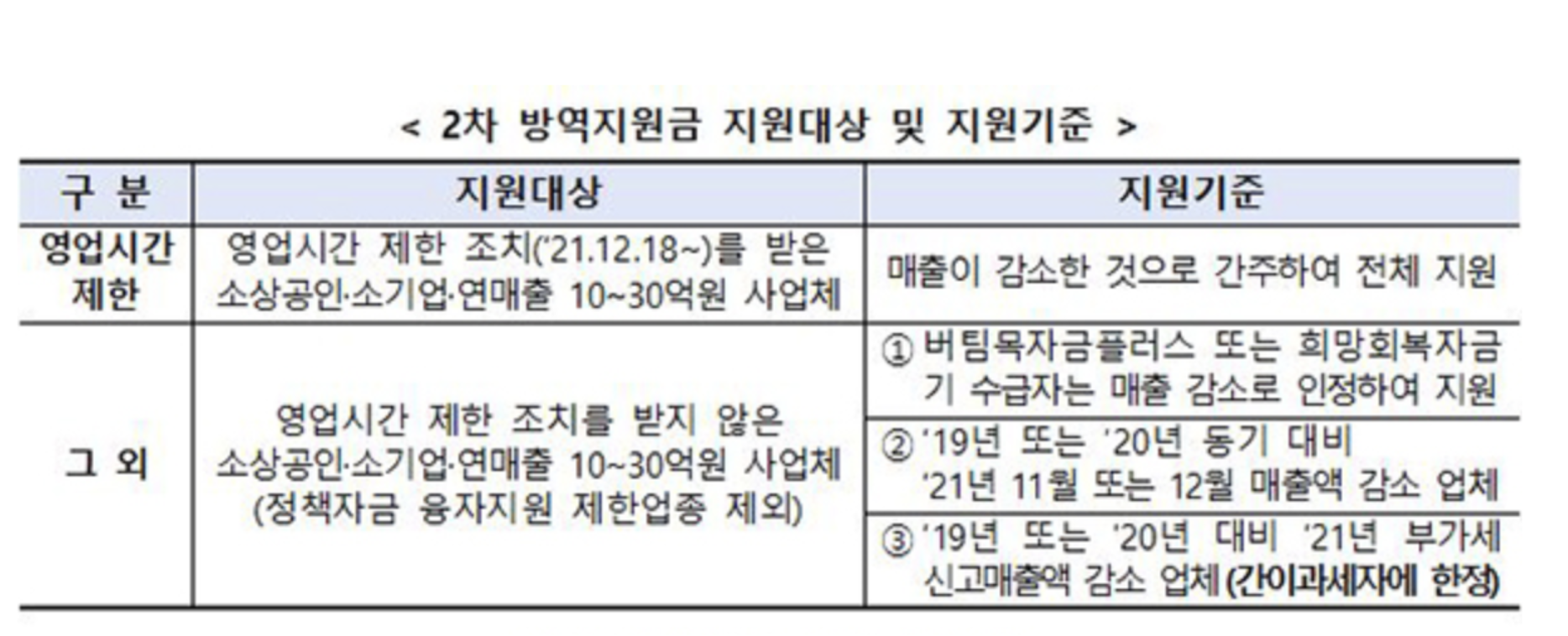 방역지원금이 생소하신 분은 아래의 2차 방역지원금 대상을 확인해주시기 바랍니다.
