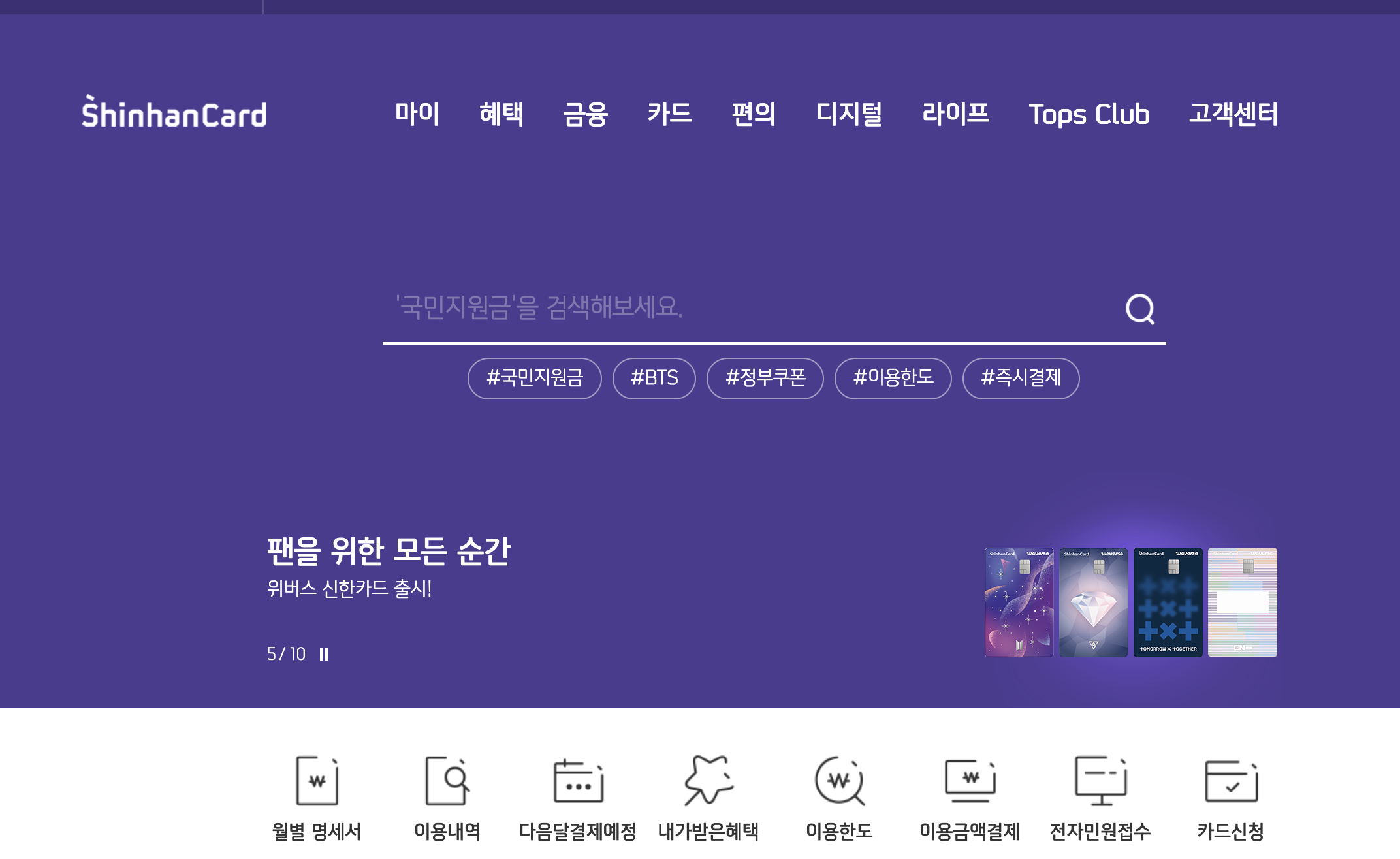 신한카드의 홈페이지(www.shinhancard.com)의 상단메뉴 또는 앱에서도 가능합니다.
